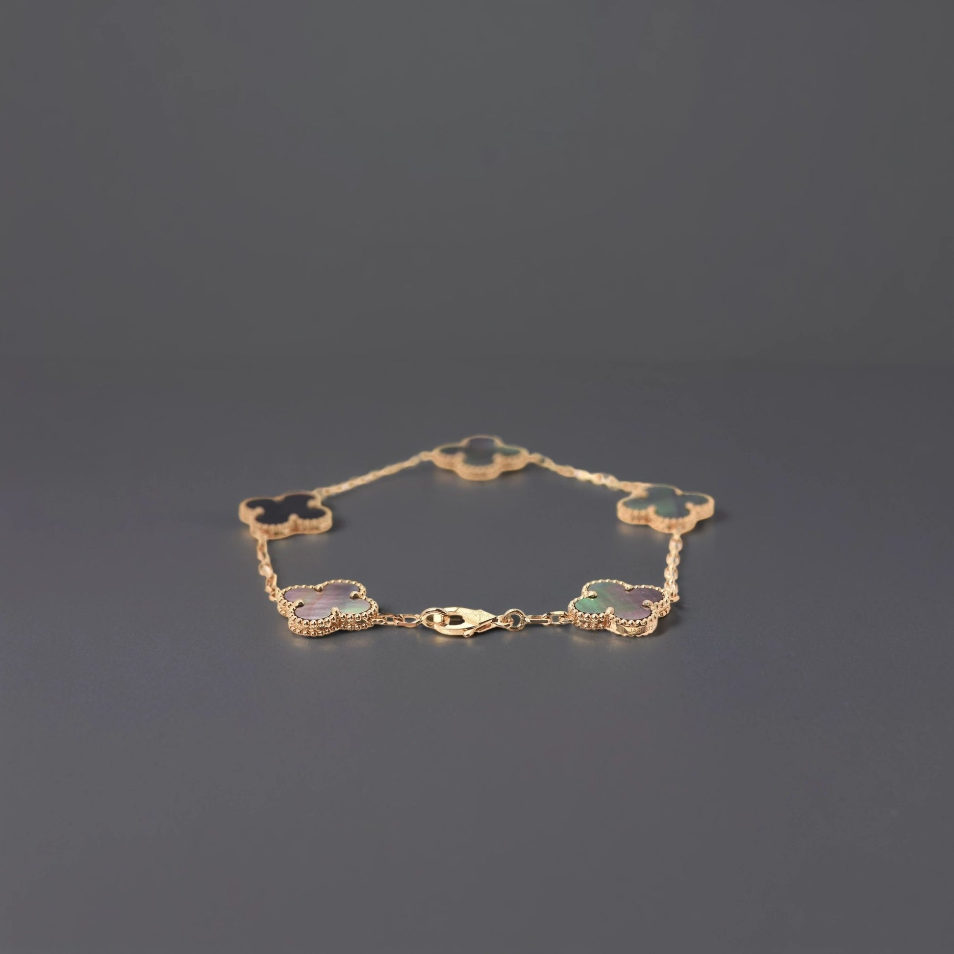 18K Yellow Gold Gray Mother of Pearl 5 Motifs Vintage Alhambra Bracelet