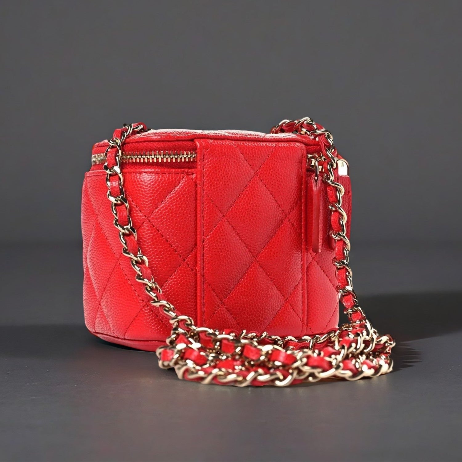 Caviar Quilted Mini Vanity Case With Chain Red