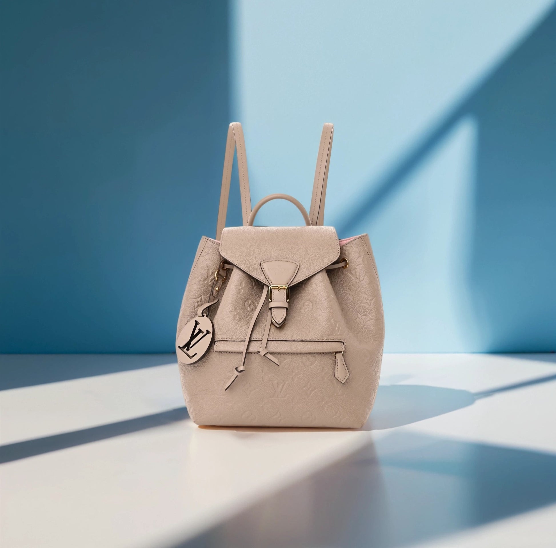 This is an authentic LOUIS VUITTON Empreinte Montsouris PM in Tourterelle. This backpack is crafted of classic Louis Vuitton empreinte leather in grey. The bag features a leather top handle adjustable shoulder straps, a front zipper pocket, and brass hardware. The crossover flap opens with a leather drawstring closure to a light pink microfiber interior with a patch pocket. This is an excellent backpack for everyday essentials, by Louis Vuitton!