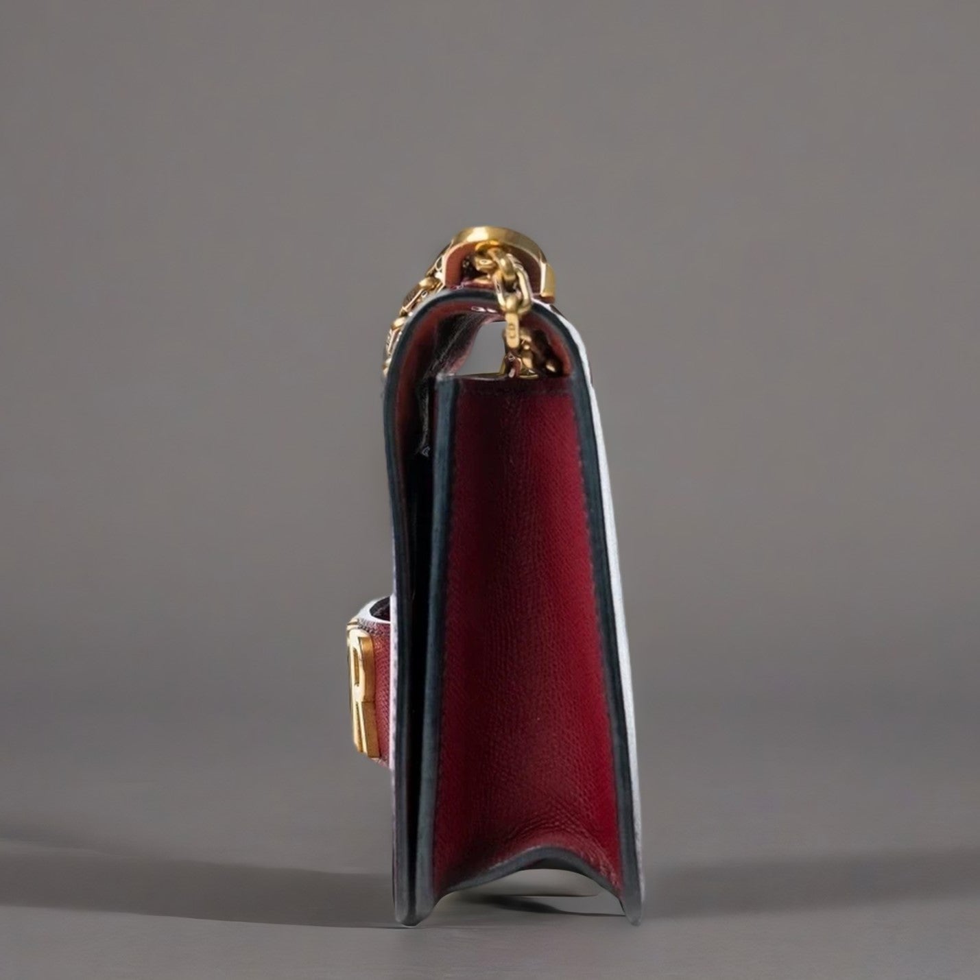 J'Adior Chain Flap Bag Dark Red Grained Leather