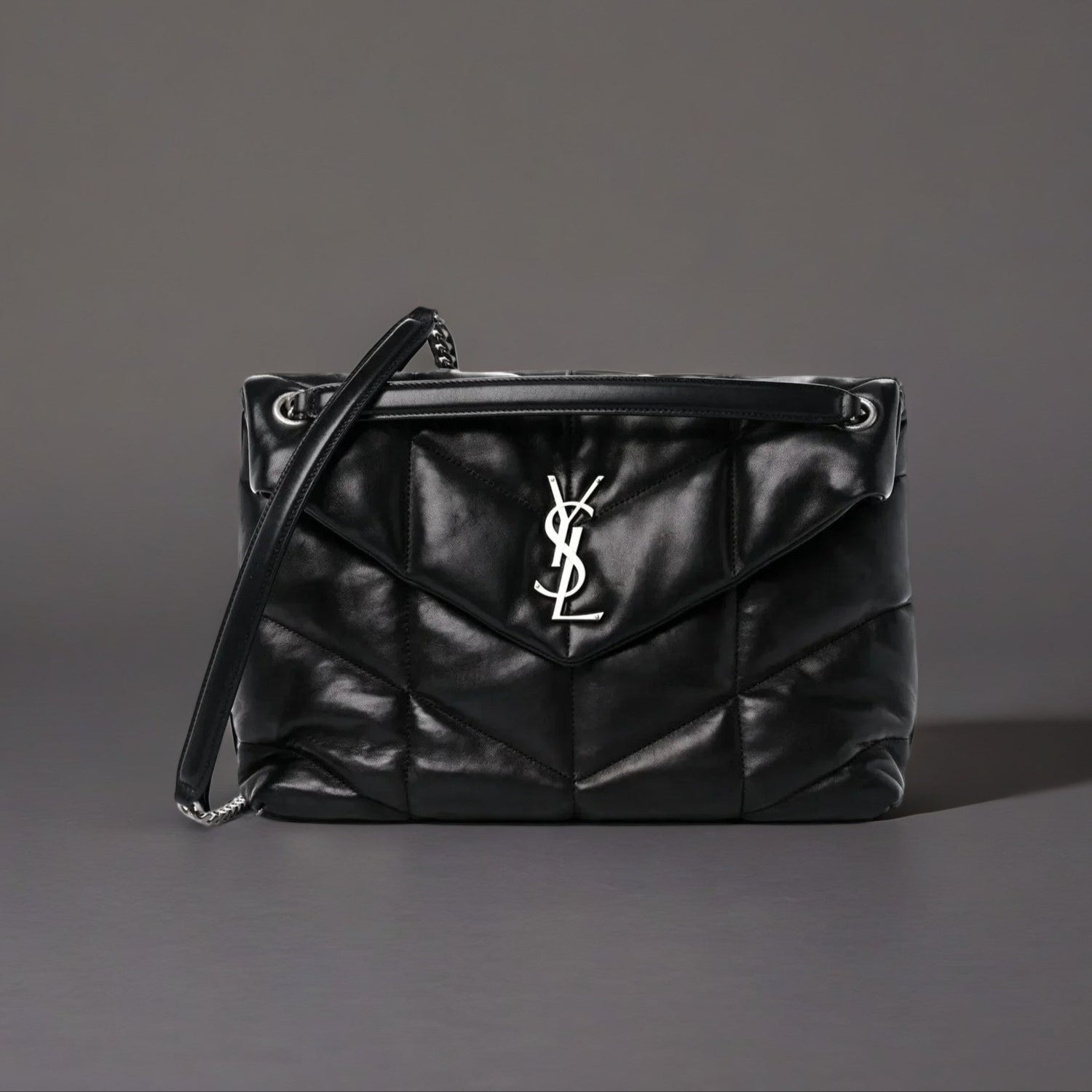 Lambskin Quilted Medium Loulou Puffer Monogram Chain Satchel Black