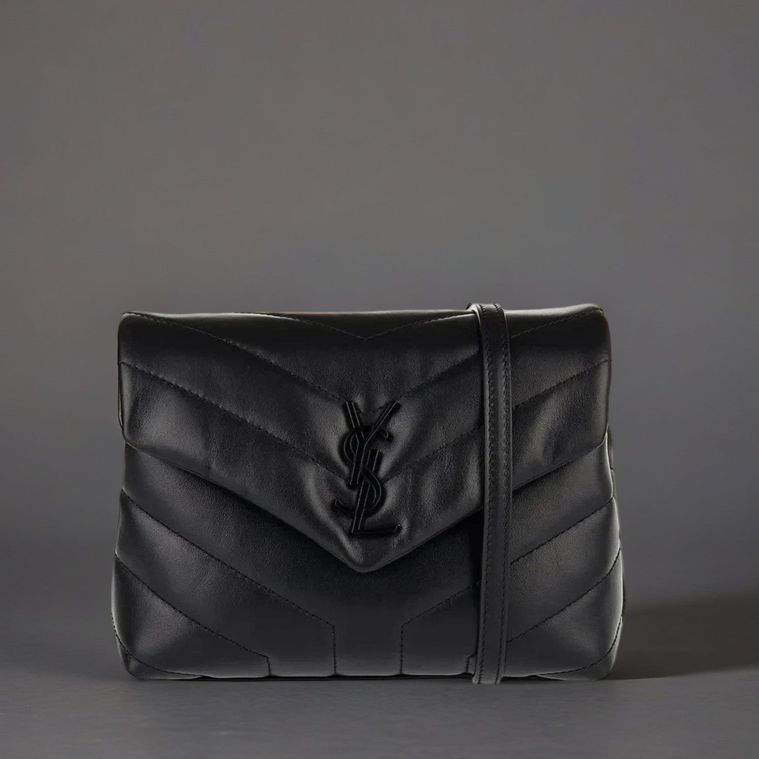 This super mini version of the House’s Loulou line is crafted from black leather in a quilted design featuring pointed flap top, magnet closure, one compartment and removable shoulder strap. The House’s YSL monogram is embellished at the front in the same shade.