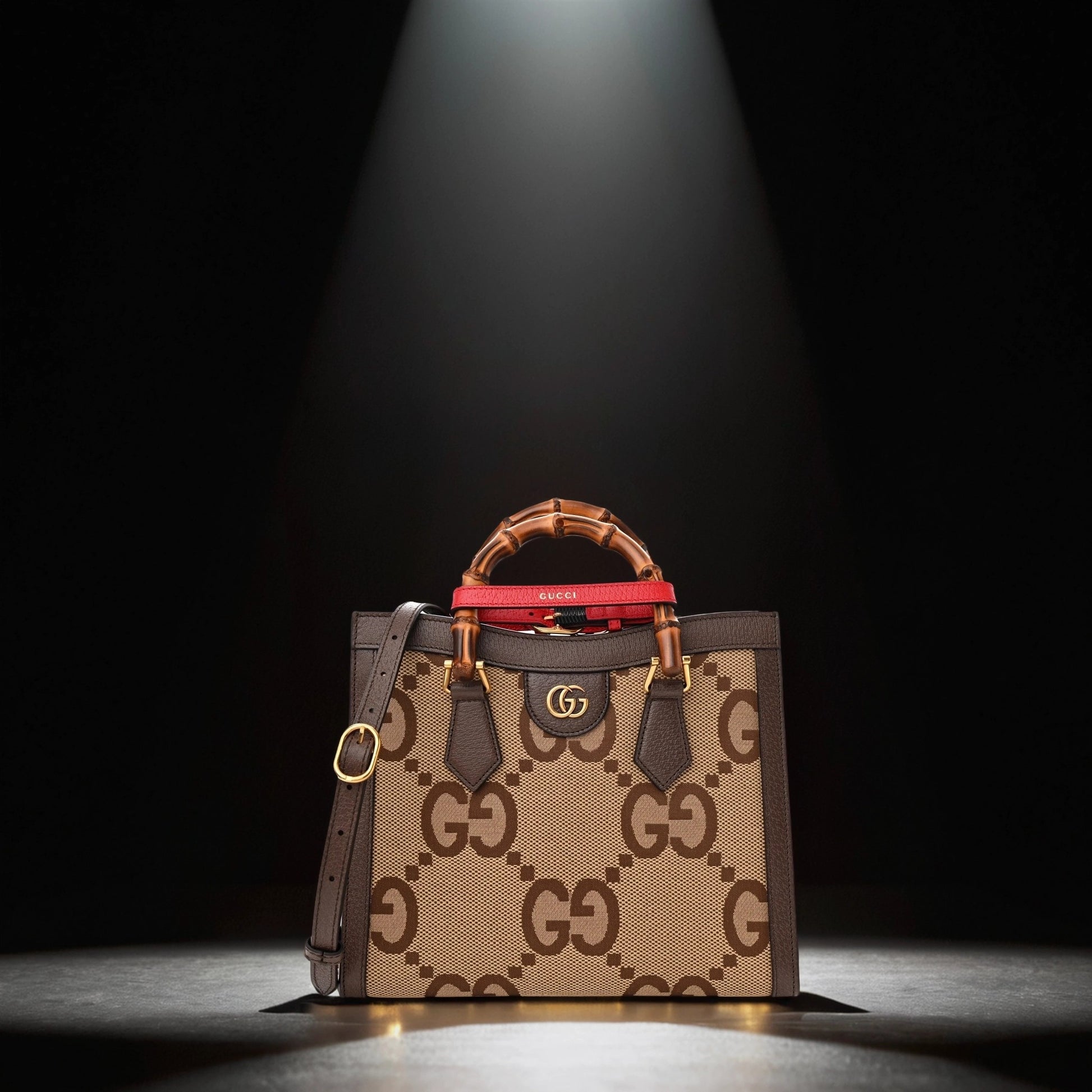 Monogram Jumbo GG Textured Dollar Calfskin Small Diana Tote Bag Camel Ebony New Acero Pomegranate Red