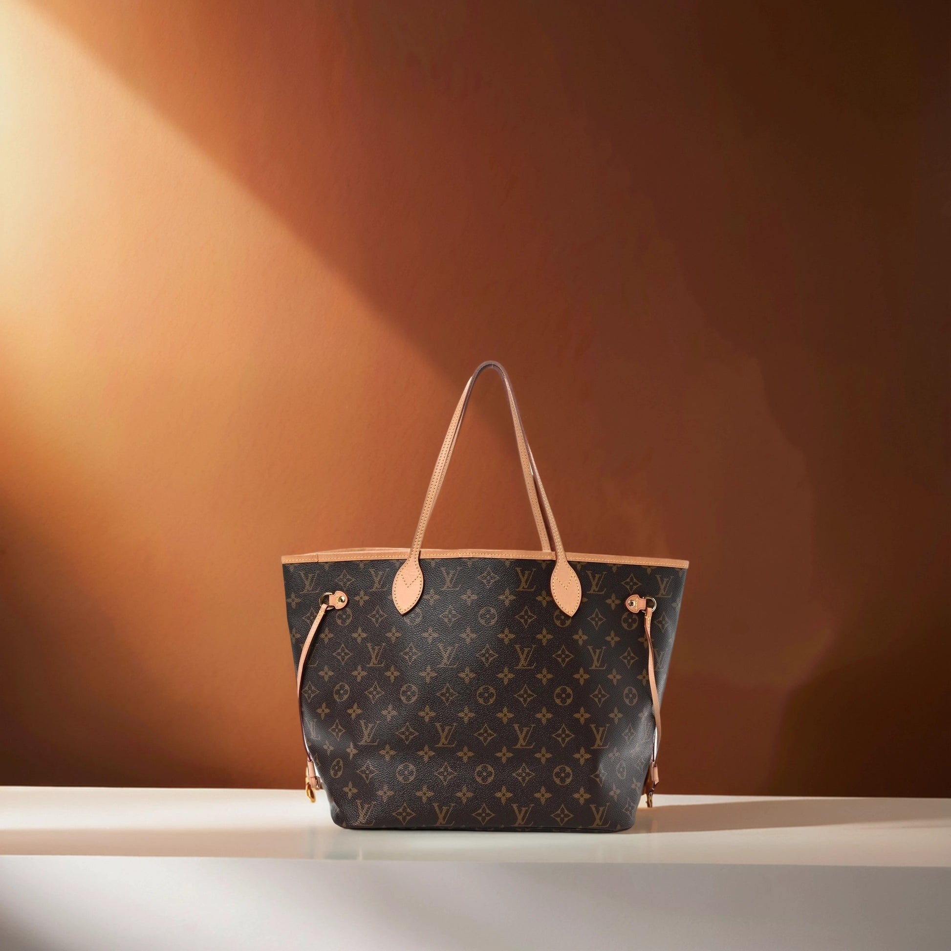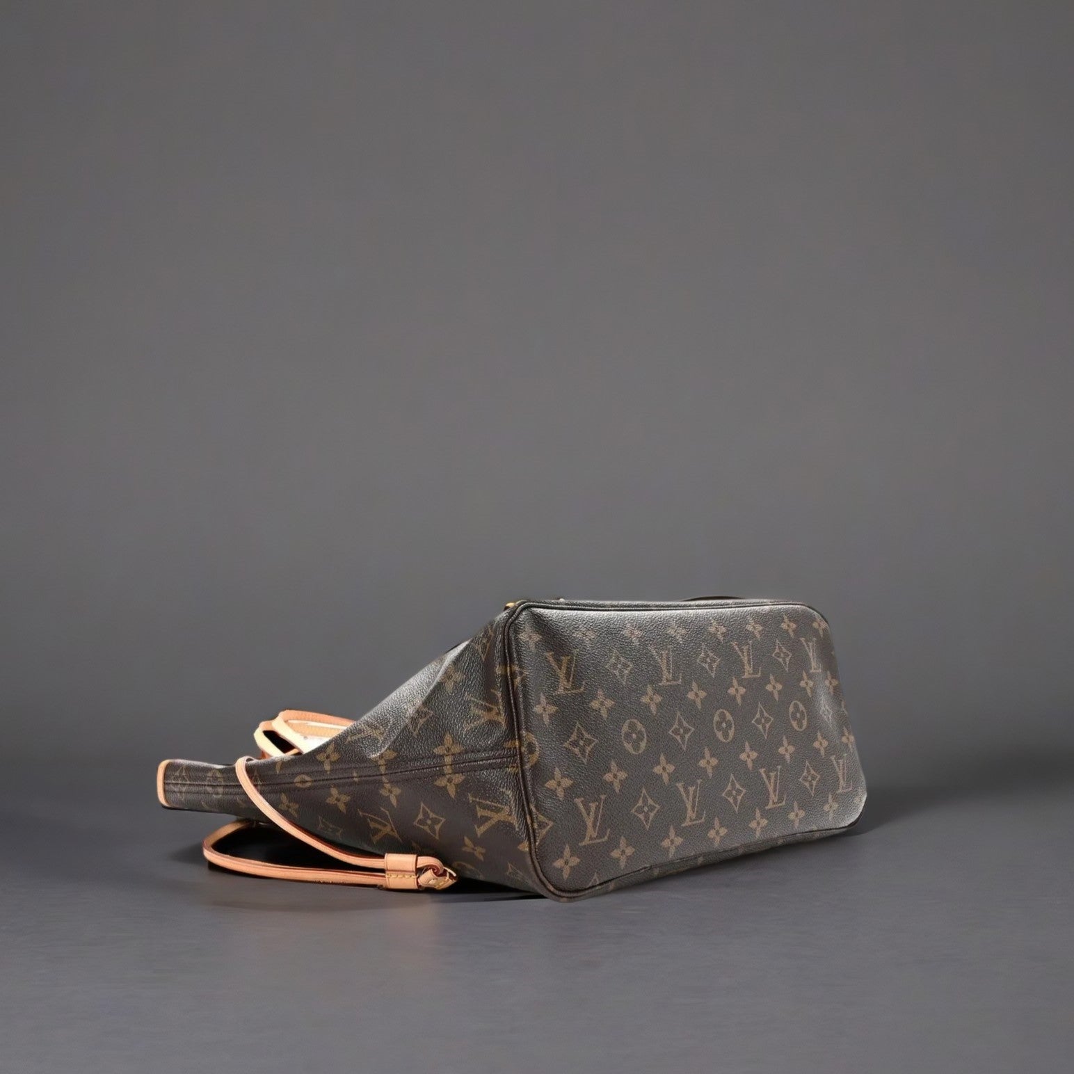 This is an authentic LOUIS VUITTON Monogram Neo Neverfull MM. This stylish tote is crafted of classic Louis Vuitton monogram on coated canvas. It features vachetta cowhide leather trim, shoulder straps, and side cinch cords. The top is open to a beige striped fabric interior with a hanging zipper pocket.