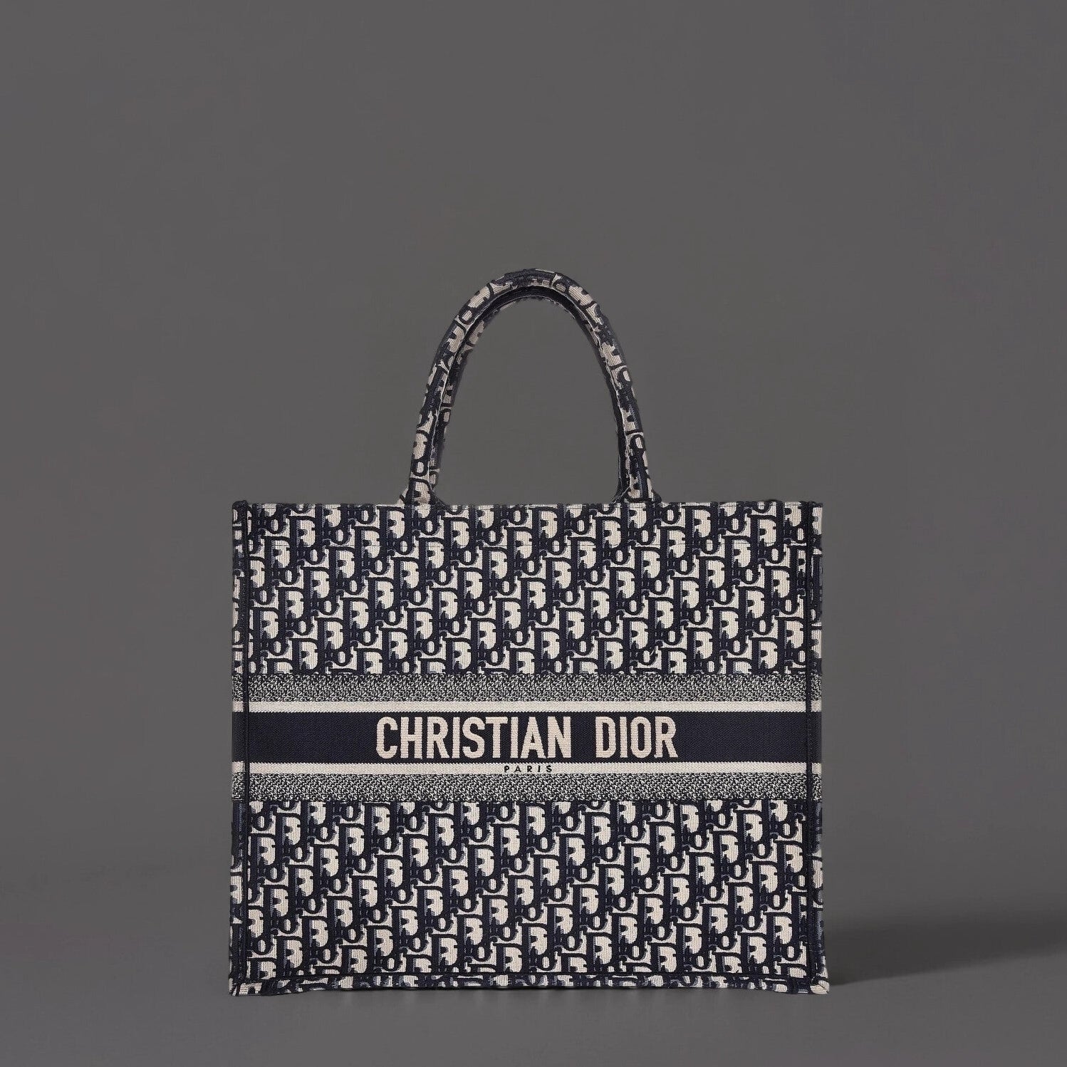 This is an authentic CHRISTIAN DIOR Embroidered Canvas Book Tote in Bleu and Multicolor. This lovely tote is crafted of the classic Oblique print canvas in navy and white. The bag features navy canvas rolled top handles with CHRISTIAN DIOR embroidered and opens to a spacious fabric interior. This is an excellent tote for everyday wear, only from Dior.