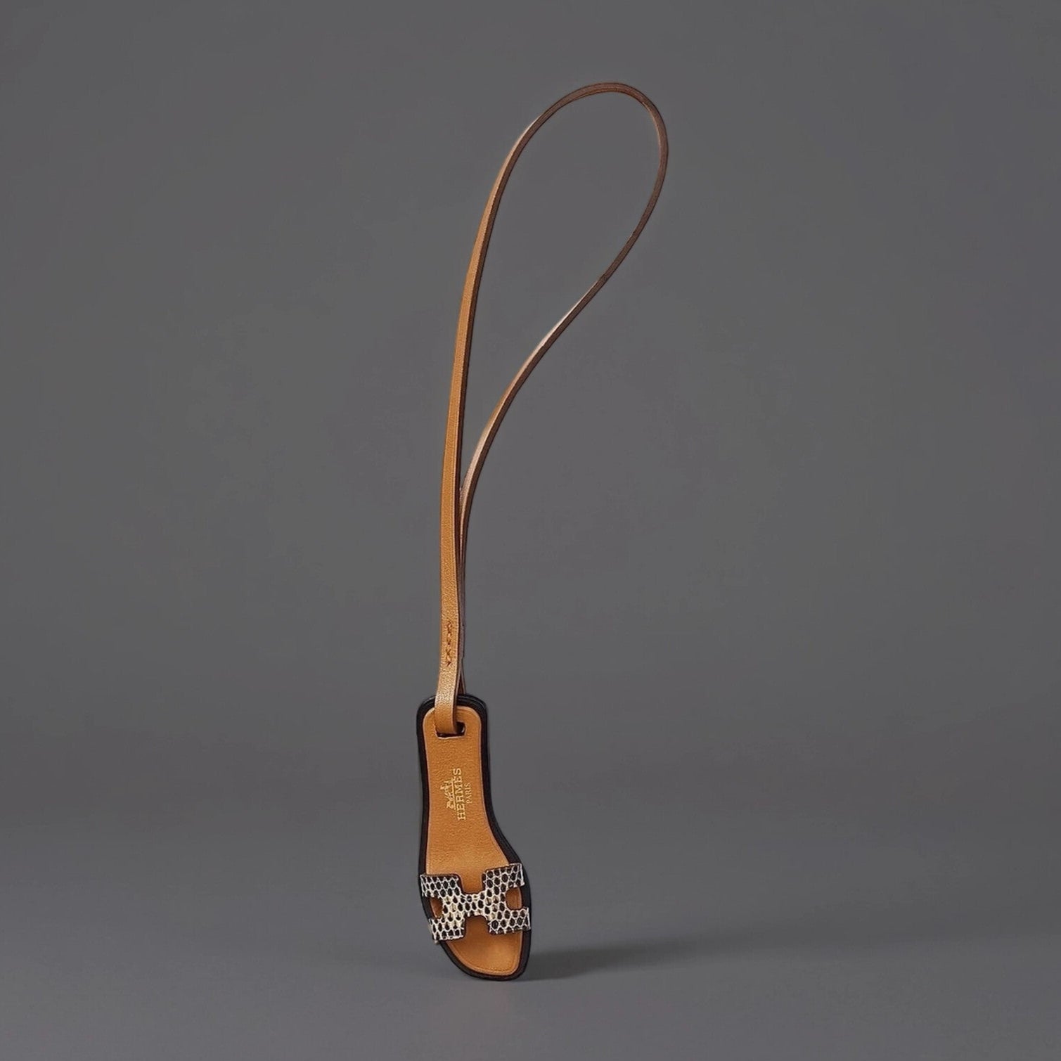 Charm in Natura lizard, Butler calfskin and Hunter cowhide with "Hermès Paris" hot stamp