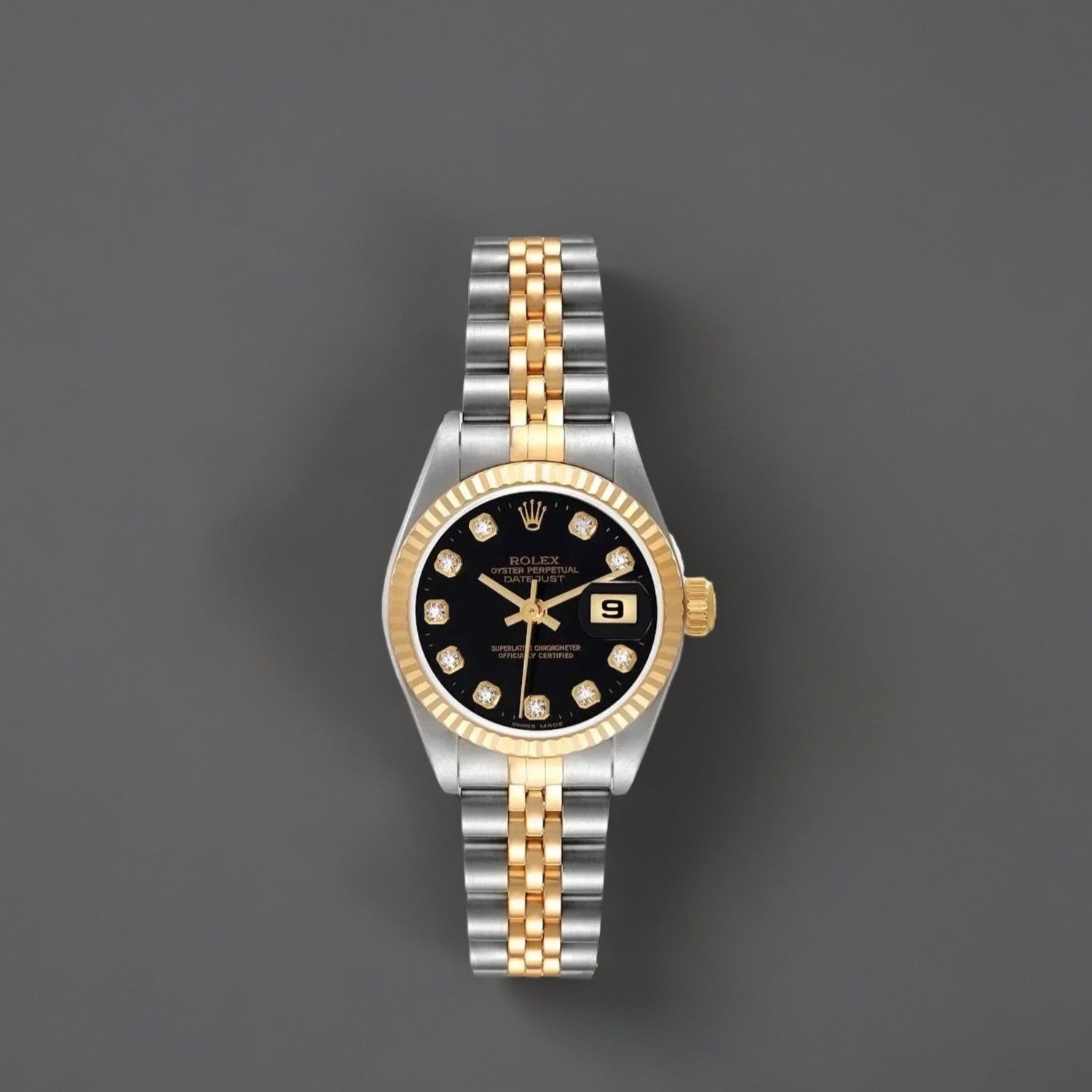 Rolex Datejust 26mm Steel Yellow Gold Black Diamond Dial Ladies Watch