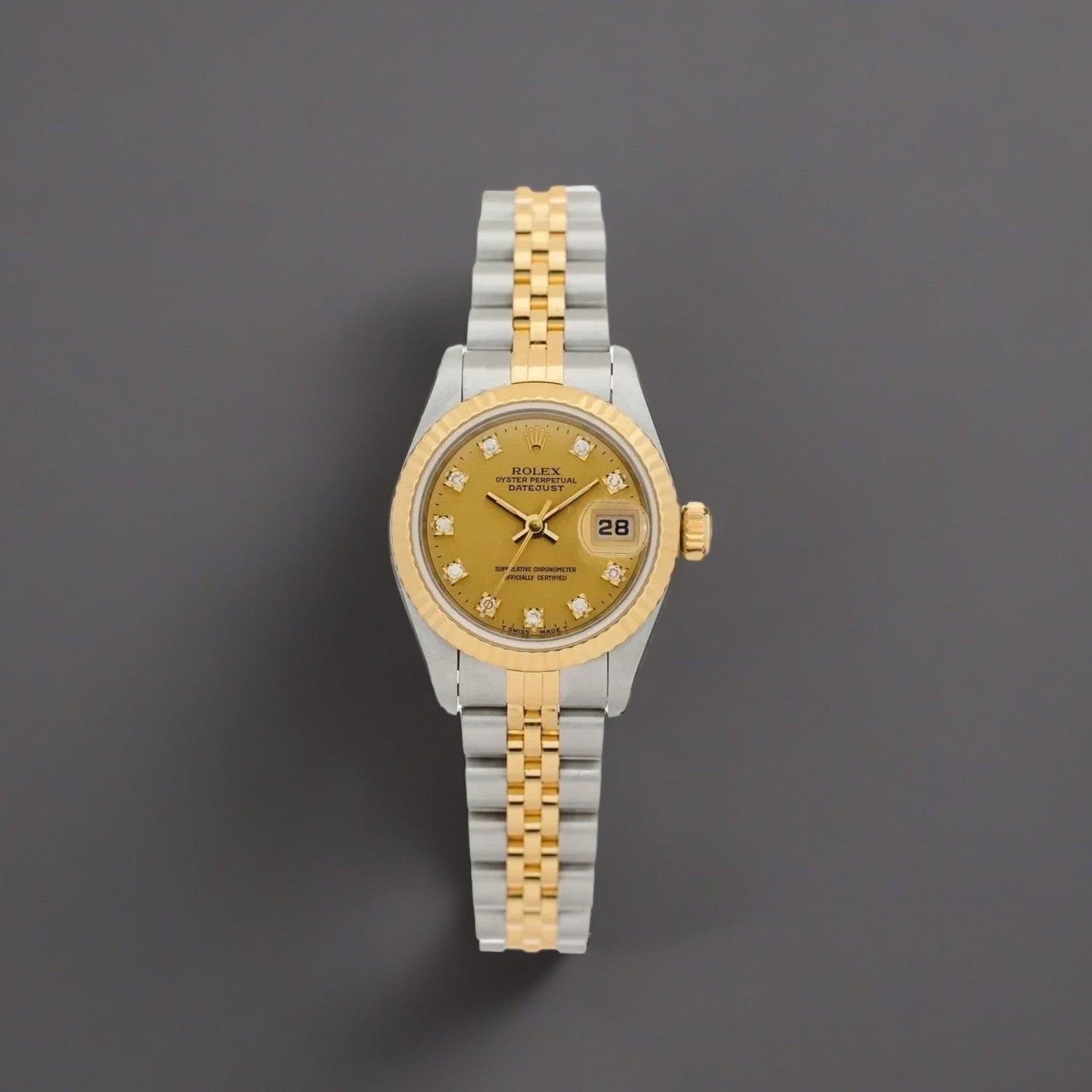 Stainless Steel 18K Yellow Gold Diamond 26mm Oyster Perpetual Datejust Watch Champagne 69173